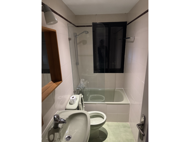 Hola, buenas la habitación está en la zona de barajas. es cómoda y el baño está aparte. en el piso hay 2 habitaciones está que se alquila y otra que aún está por terminar, y ambas compartirán el mismo baño. la habitación tiene televisión. el edificio cuenta con piscina para el verano, buenas vistas y terraza